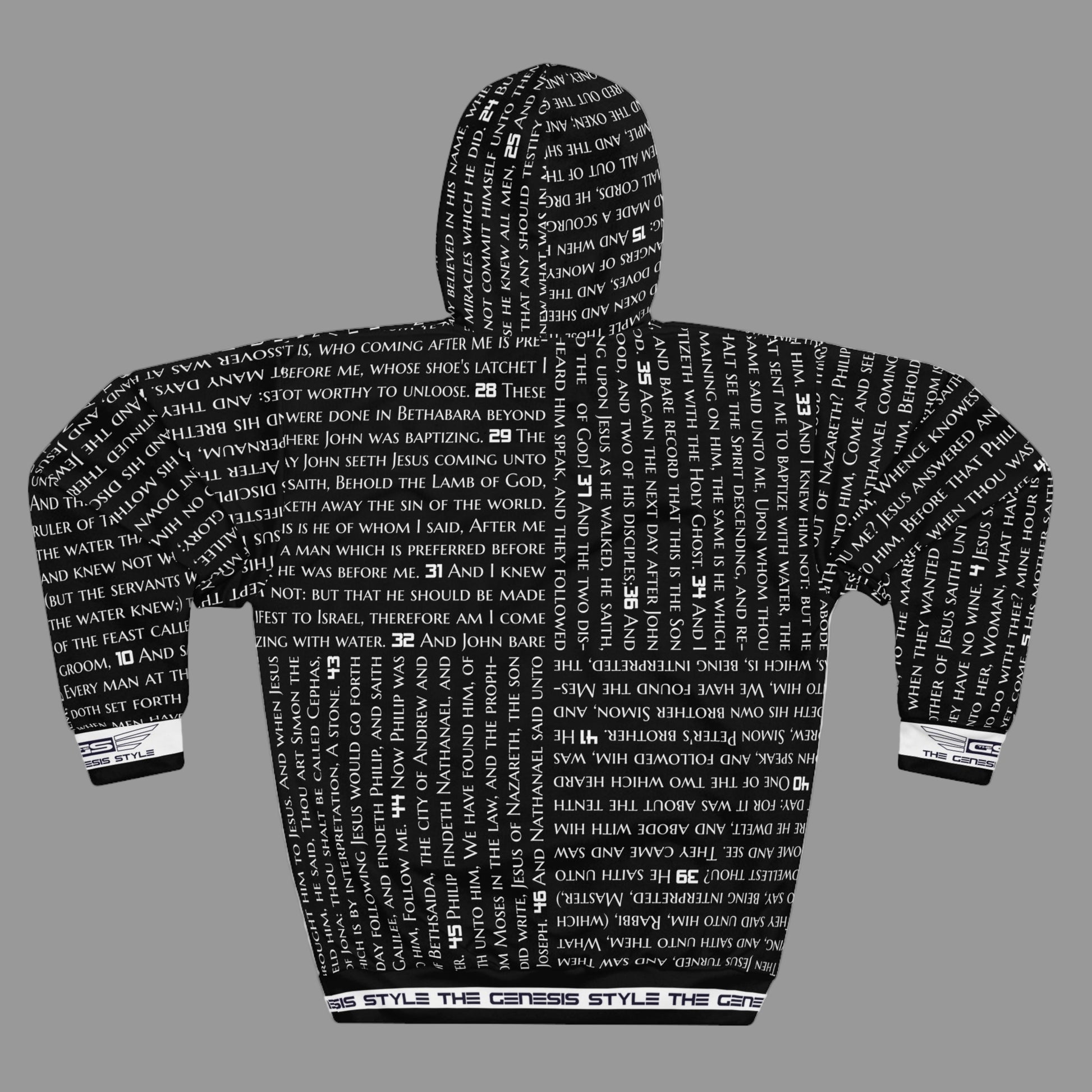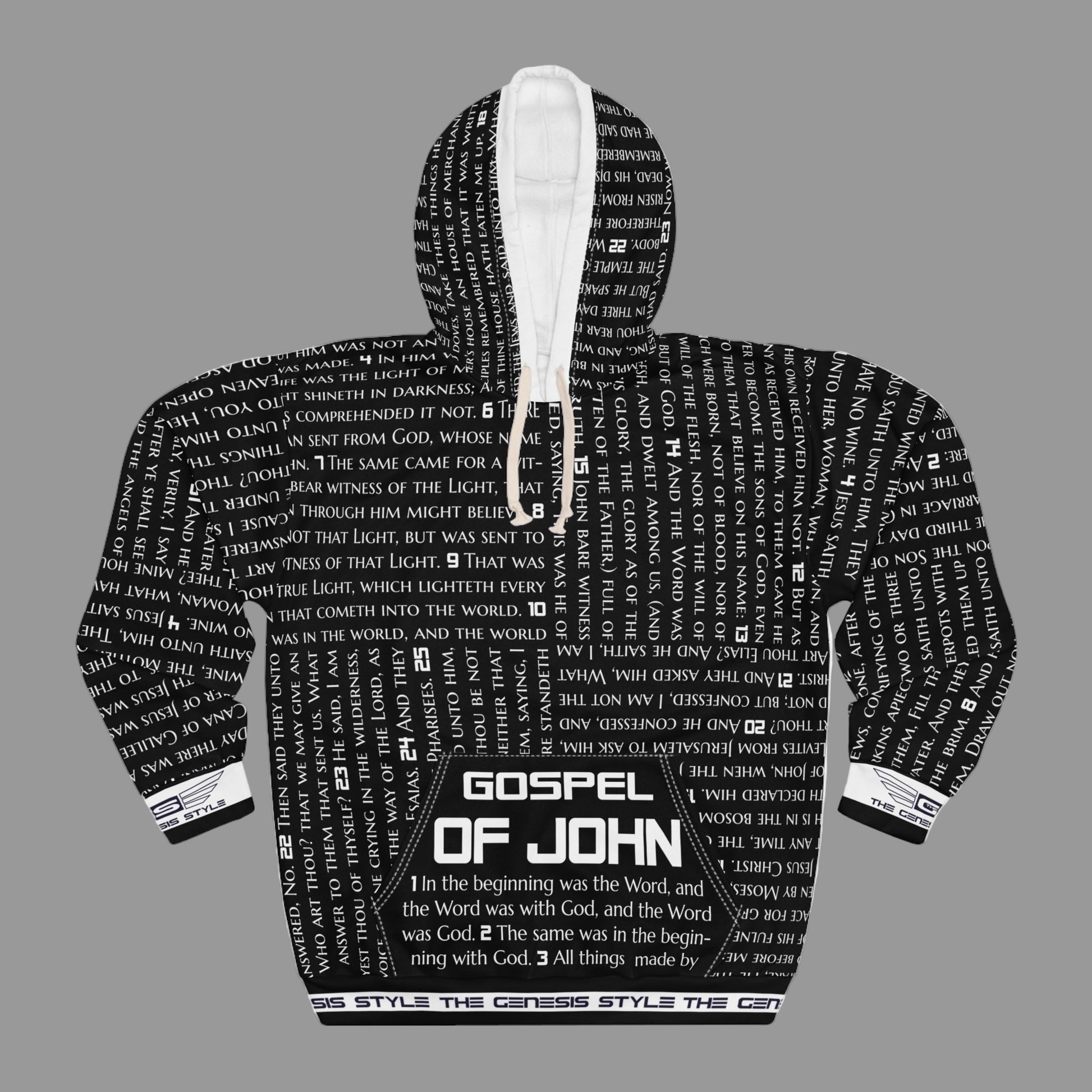 Illuminate your spirit with revelation. The John Gospel Hoodie for Her from the Four Gospels Collection by The Genesis Style captures divine mystery through modern design. Fully printed with scripture from the Gospel of John, this hoodie radiates truth, light, and eternal life…