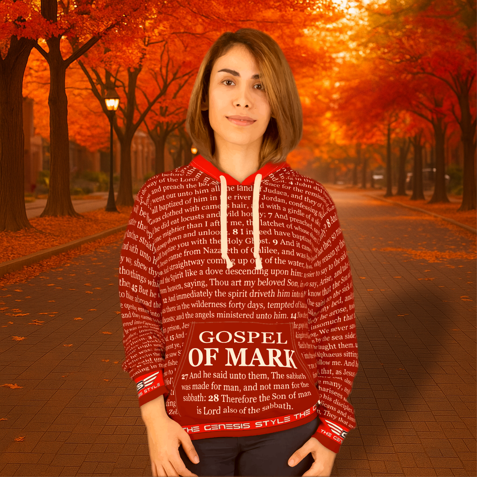 Bold faith meets divine fashion. The Mark Gospel Hoodie for Her from the Four Gospels Collection by The Genesis Style empowers women to wear their faith fearlessly. Each hoodie is wrapped in the Word — pages from the Gospel of Mark that remind you to walk in courage, strength, and action…