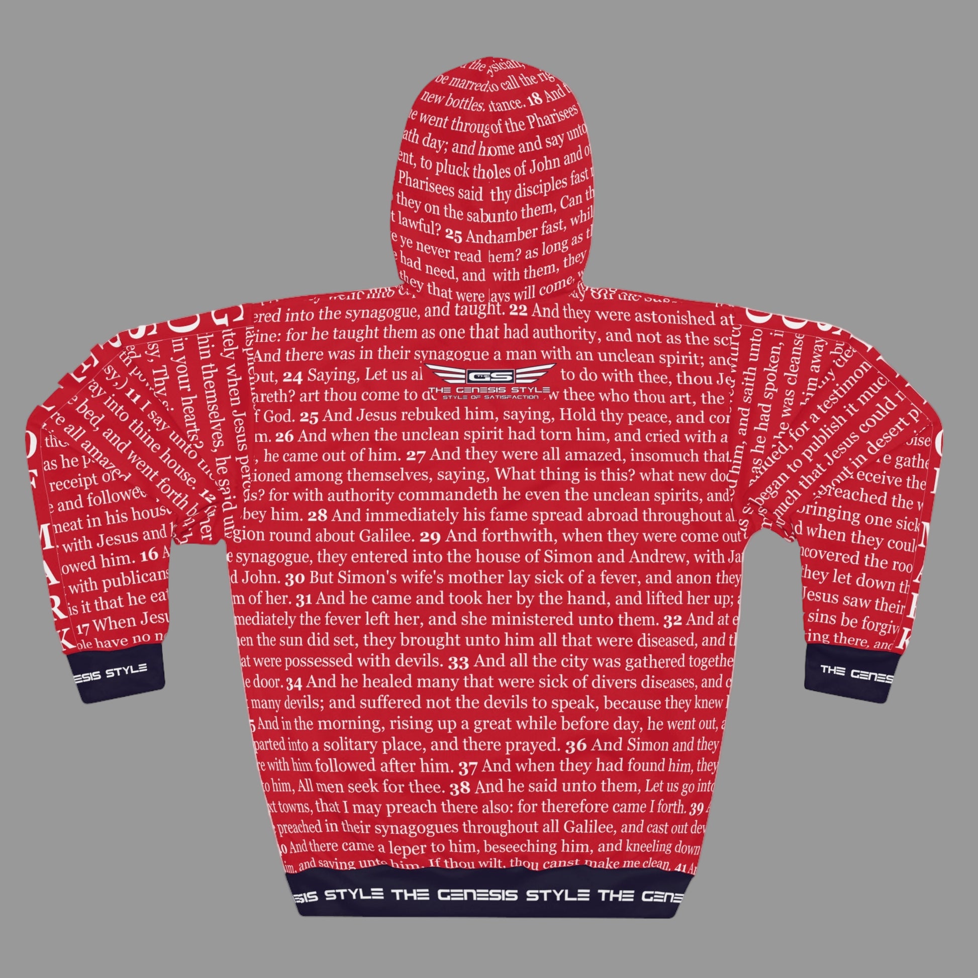 Wrap yourself in the Word. The Gospel Hoodie Pullover from Four Gospels Collection by The Genesis Style brings Scripture to life through powerful design and prophetic fashion. Each hoodie is fully covered in pages from the Gospels, declaring truth and light with every step you take…